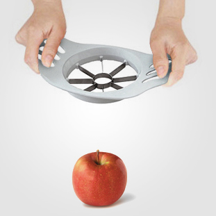 雙手握住手柄,由上而下切,一下就能將蘋果切成八塊同等的大小,十分美觀。