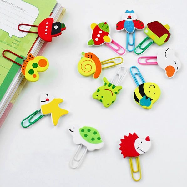 12個彩繪動物圖案萬字夾,可當書籤使用。