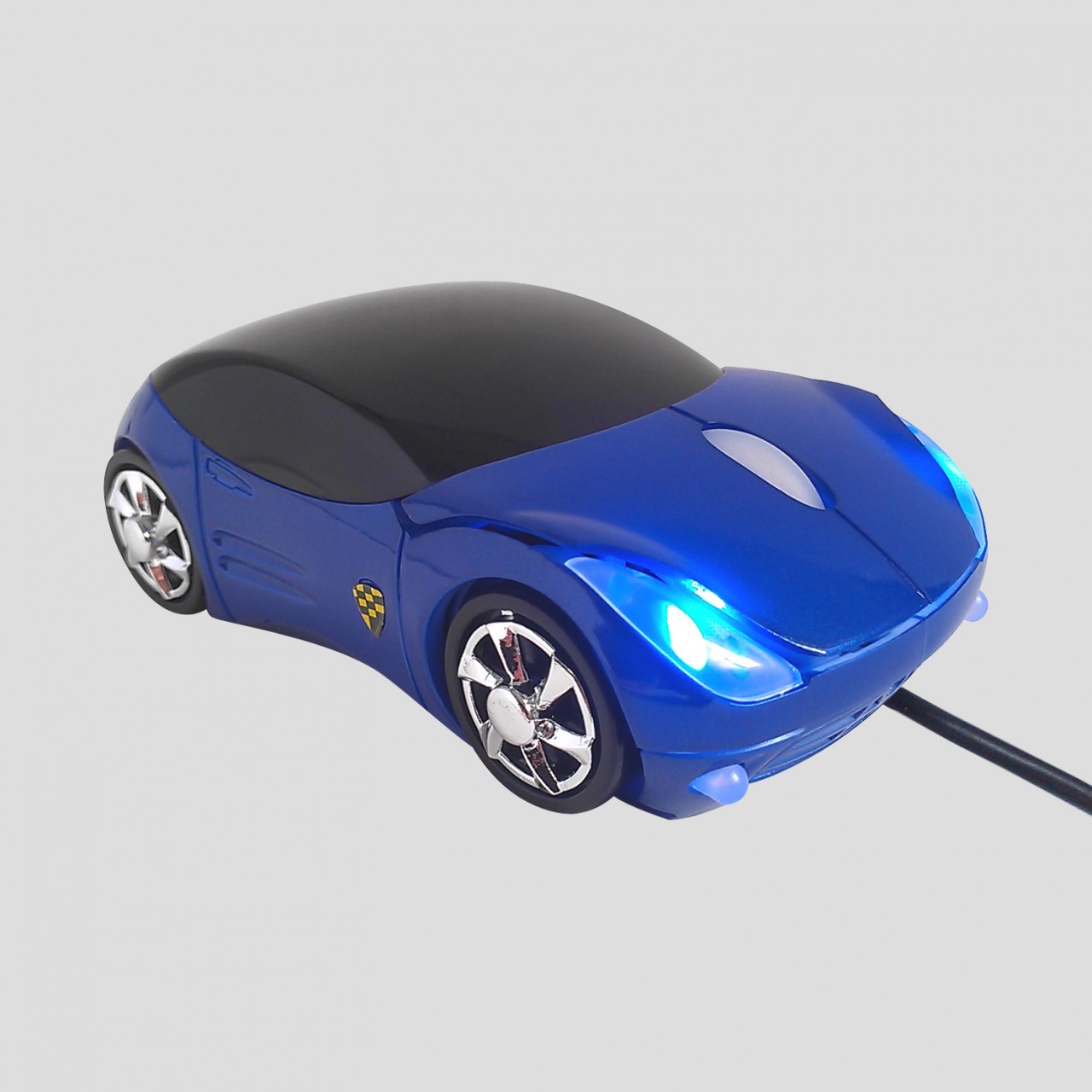 車頭和車尾燈會發亮的有線跑車造型光學滑鼠。兩邊對稱設計,左右手通用。