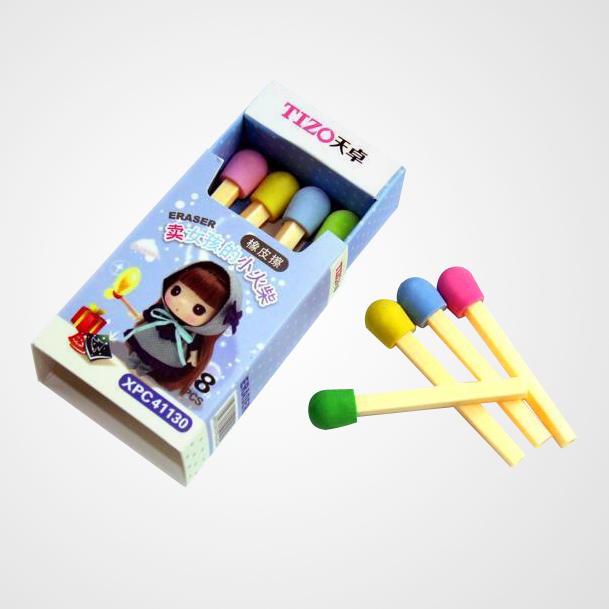 小火柴造型擦膠,1盒有8支。