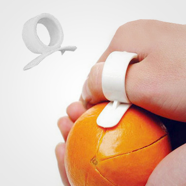 指環形狀的設計,可套在大拇指上,大拇指即時變成巧妙的開橙器。可輕鬆地剝離橙、桔等水果的果皮,可避免因果汁四濺而弄髒衣物,也不會剝得指甲生疼。使用簡單方便。1包有兩個。