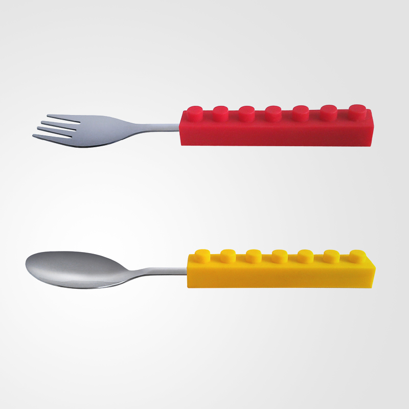 積木造型的手柄設計,可以像LEGO積木一樣疊起來的西餐餐具,軟矽膠手柄,手感舒適。不用時,可以疊起來收藏,方便整齊。一盒有叉子及勺子共2件餐具。