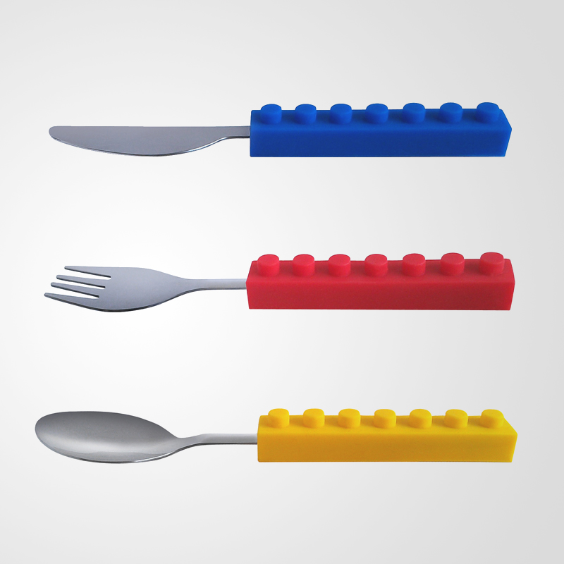 積木造型的手柄設計,可以像LEGO積木一樣疊起來的西餐餐具,軟矽膠手柄,手感舒適。不用時,可以疊起來收藏,方便整齊。一盒有叉子,刀子及勺子共3件餐具。